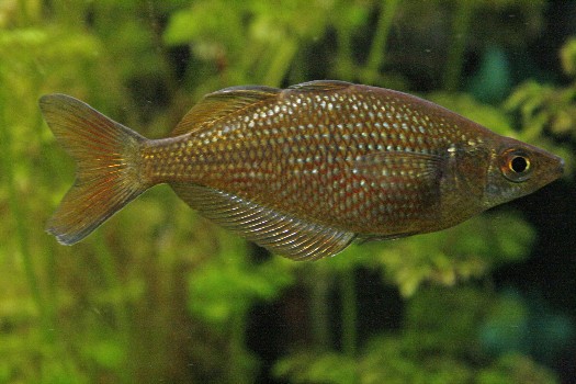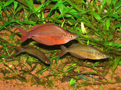 Werden regelmässige Wasserwechsel eingehalten und abwechslungsreich gefüttert, sollte die Haltung problemlos sein. Wenn das Aquarium ausreichenden Schwimmraum und dichte Randbepflanzung aufweist. zeigen die männlichen Tiere eine intensive Rotfärbung. Die Weibchen sind silbergrau mit rötlichen oder schwarzen Schwanzflossen. Wie jeder Regenbogenfisch fühlt sich auch diese Art in einer Gruppe am wohlsten, dabei spielt es eine geringe Rolle auch wenn die Gruppe aus verschiedenen Regenbogenfischarten besteht.