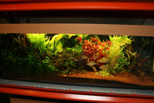 Momentan betreibe ich 13 Aquarien davon 7 bepflanzt, in den Grössen 2 x 375L, 1x280L, 1x240L, 1x160L, 1x140L, 1x112L. Dazu 1 Zucht- bzw. Quarantänebecken mit 96L und 5 Aufzuchtbecken mit je 54L. Das sind 2048L Wasservolumen insgesamt.